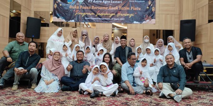 BANJARMASIN – Dalam puncak menyemarakkan bulan suci Ramadhan PT Astra Agro Lestari mengadakan kegiatan dengan berbagi kebahagian dengan bersama anak yatim dari Panti Asuhan Putri Nur Azizah di Hotel Pyramid Banjarmasin, Rabu (29/3).