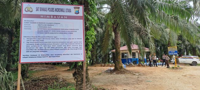 Morowali Utara, 25 Januari 2023: Ada pemandangan yang tidak biasa di beberapa titik lokasi perkebunan kelapa sawit yang dikelola PT Agro Nusa Abadi (ANA). Beberapa personil berseragam tampak berbincang-bincang santain di pintu masuk kawasan perkebunan. “Kami menjalankan tugas sesuai surat Edaran Pak Gub tanggal 06 Desember 2023 yang ditujukan kepada salah satunya Pak Kapolda,” kata…